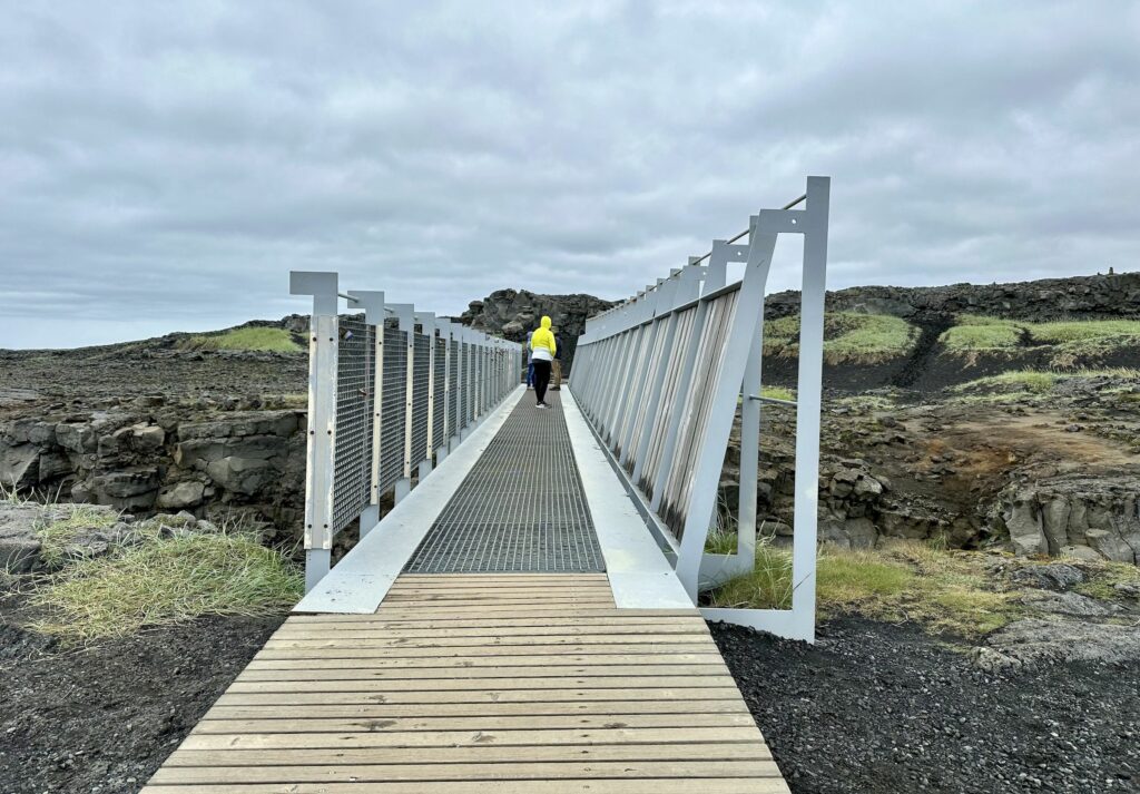 An diesem Tag waren wir auf dem Weg zur „Blauen Lagune“. Vorher führte uns jedoch der Weg an der „Bridge Between Continents“ vorbei. Die wir uns unbedingt anschauen wollten. Es ist eine Brücke zwischen Europa und Nordamerika auf der Halbinsel Reykjanes.