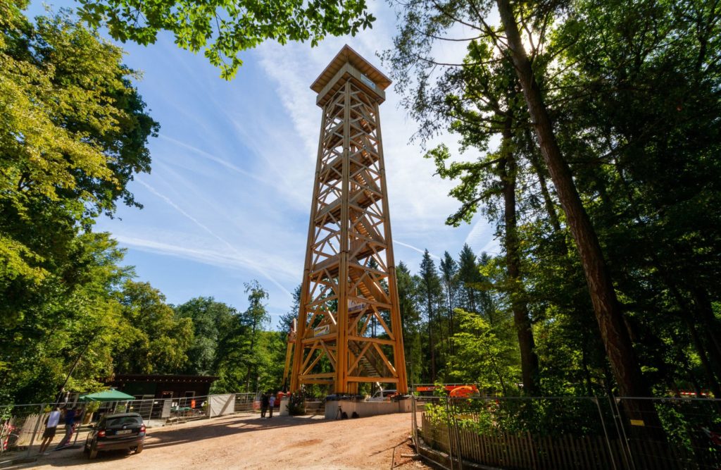 Der Goetheturm war ein 1931 vollständig aus Holz erbauter, 43,3 Meter hoher Aussichtsturm am nördlichen Rand des Frankfurter Stadtwaldes in Sachsenhausen (Stadtteil von Frankfurt am Main) im Sachsenhäuser Landwehrweg. Der nach Johann Wolfgang von Goethe benannte Turm hatte 196 Stufen und war bis 1999, als er vom Jahrtausendturm in Magdeburg abgelöst wurde, der höchste öffentlich zugängliche Holzbau Deutschlands. In der Nacht zum 12. Oktober 2017 wurde er durch Brandstiftung zerstört. Der Wiederaufbau begann im November 2019; komplett fertiggestellt wird der rekonstruierte Turm bis Herbst 2020. Der neue Goetheturm unterscheidet sich optisch von seinem Vorgänger nur durch die hellere Farbe. Auch der Neubau besteht größtenteils aus Holz; an einigen Schnittstellen wurden Stahlelemente eingebaut, die den Turm widerstandsfähiger gegen Feuchtigkeit machen und die Instandhaltung erleichtern sollen. (wikipedia)