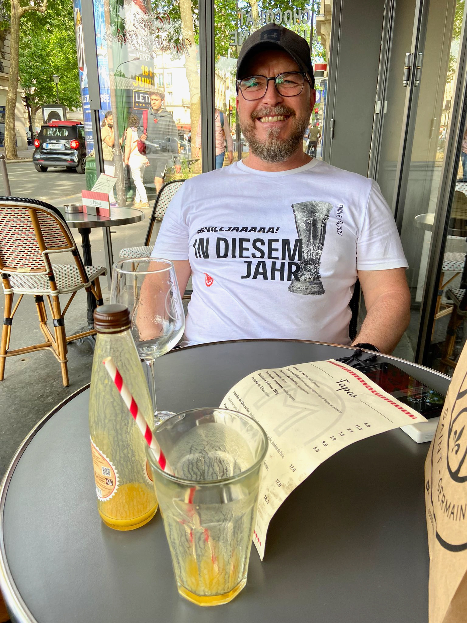 Mittwoch 18.05.22. Der eine besondere Tag dieser Tage, der Geschichte schreiben konnte und am Ende das Tages hat! Europacup Final Spiel unser Eintracht gegen die Rangers in Sevilla. Da ich weder in Sevilla noch im Waldstadion beim Public Viewing (obwohl ich hierfür Karten hatte) dabei sein konnte, hieß es für mich zum einen mit Stolz den ganzen Tag das Final T-Shirt in Paris tragen und zum anderen am Abend pünktlich um einundzwanzig Uhr vor dem Fernseher im Hotel zu sitzen.