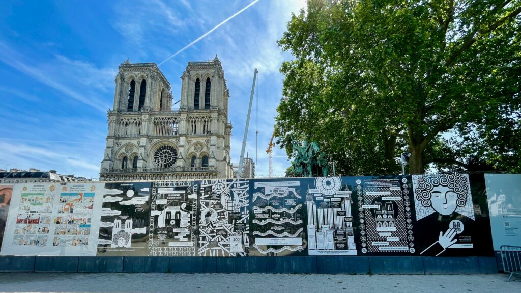 Der Notre Dame ist aktuell eine riesige Baustelle. Ich hatte gehofft, das sie inzwischen mit ihren Bauarbeiten schon weiter sind und man mehr von seiner alten Pracht wieder sehen konnte. Interessant war es trotzdem und wenn ich mir vorstelle das für ein Chaos es damals bei dem Brand gewesen sein muss, kaum vorstellbar. Zudem es viele Wohnungen und Geschäfte in unmittelbarer Nähe gibt. Wahnsinn! An dem Bauzaun rund um das Areal wurde alles auf Fotos und zahlreichen Informationen zum nachlesen dokumentiert. Gut kann ich mich an die Bilder des Brandes im Fernsehen erinnern. Ich bin gespannt wenn der Notre Dame wieder in seiner alten Pracht erstrahlt und dann werden wir mit Sicherheit noch einmal nach Paris kommen, um es uns anzuschauen.
