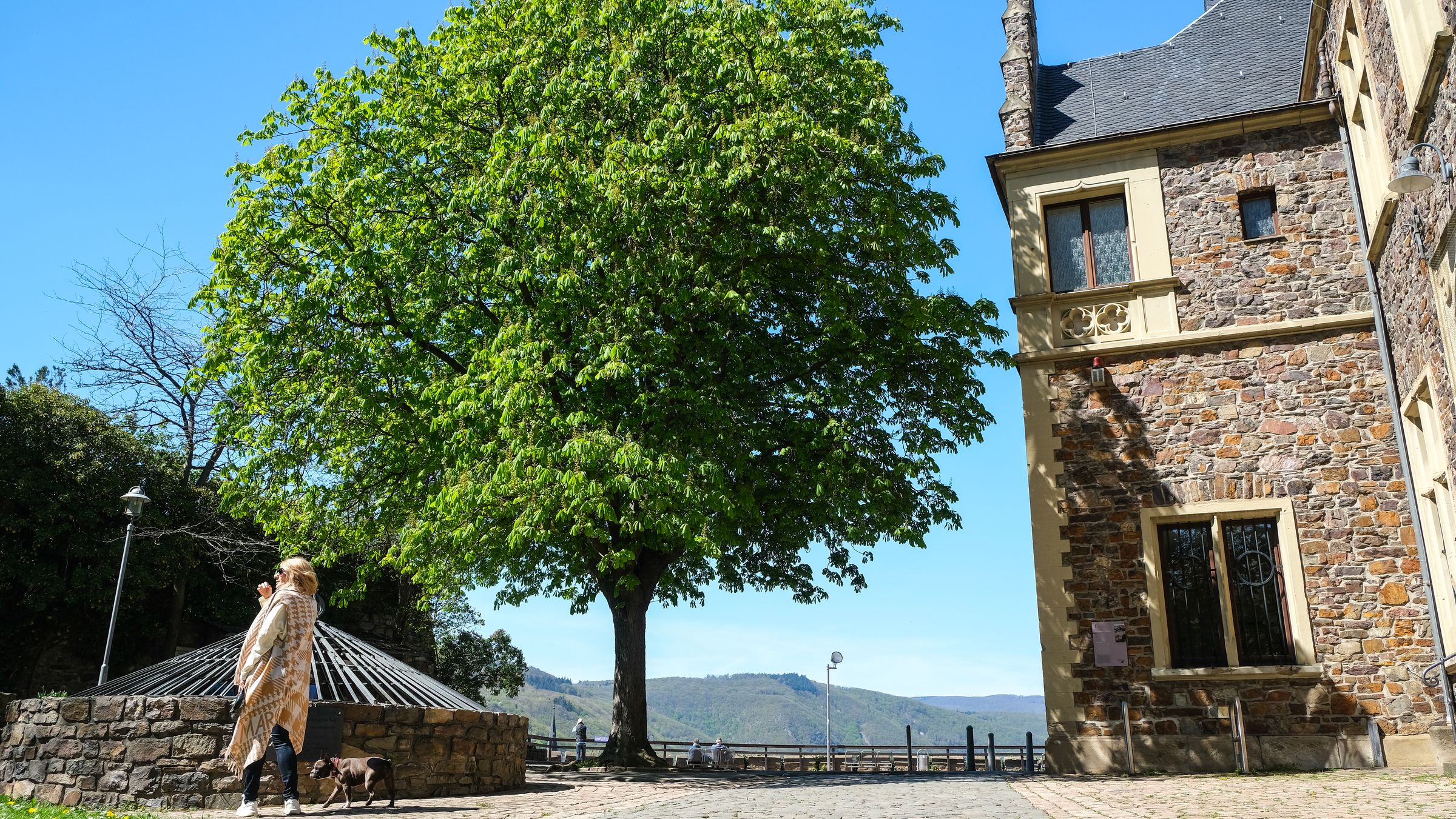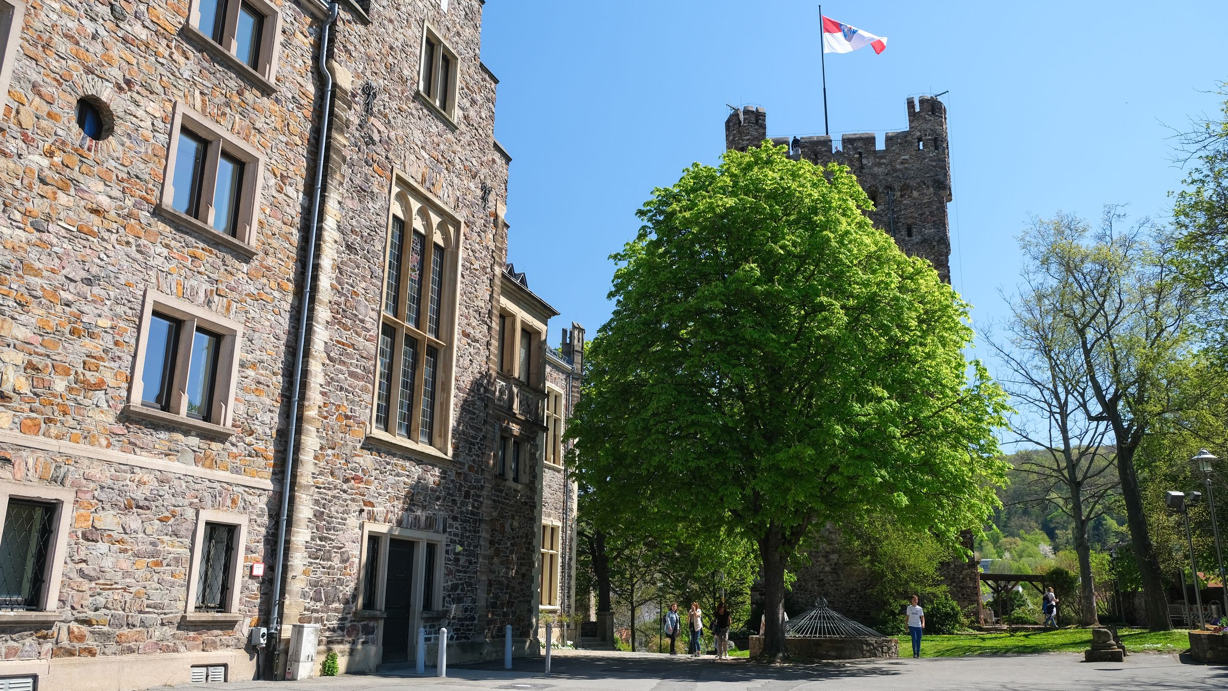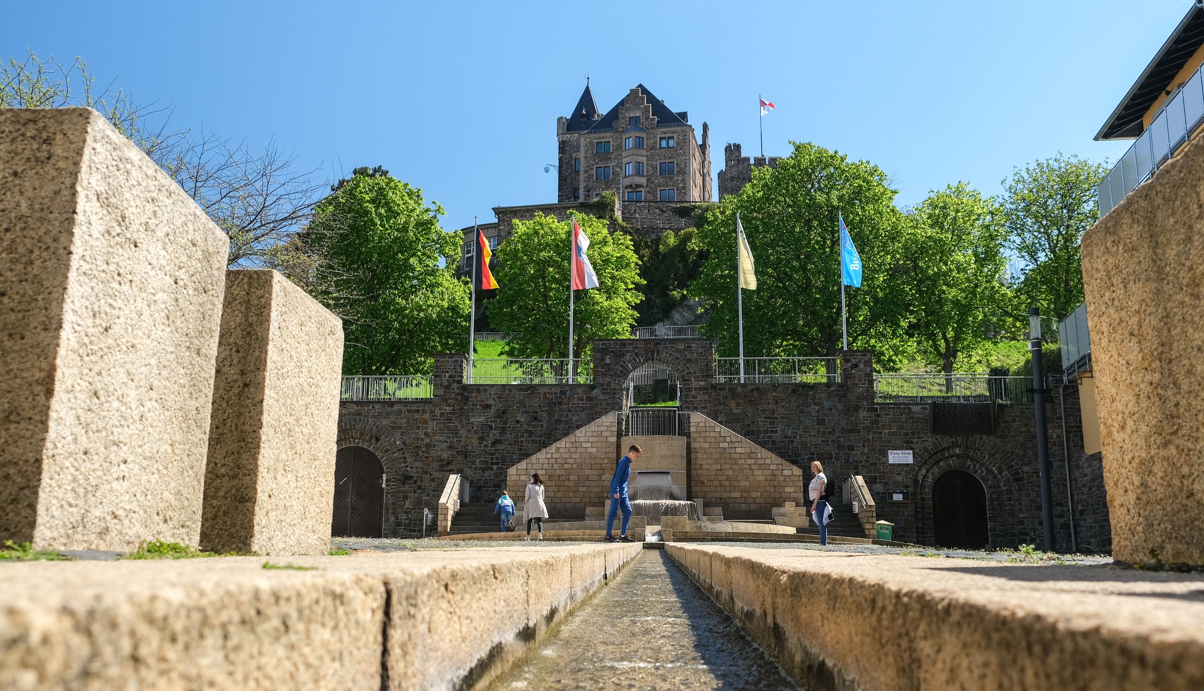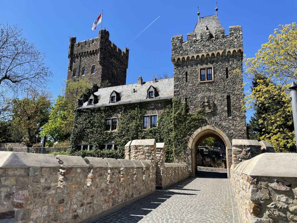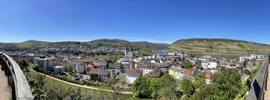 Gestärkt ging es danach weiter entlang der Uferpromenade bis diese scharf nach links abbiegt. Dort kann man dann rechts weiter über die Brücke Richtung Park am Mäuseturm weiter laufen oder wie wir, die unseren Weg in Richtung Burg Klopp einschlugen. Hier geht es ein paar engen Gassen entlang und kurz danach hat man sein Ziel bereits erreicht. Die Aussicht von dort oben muss man gesehen haben. Beeindruckend. Man kann dort den Turm hoch gehen, was wir aber aus ließen um uns anschließend, durch die Innenstadt wieder in Richtung Parkplatz zu bewegen.