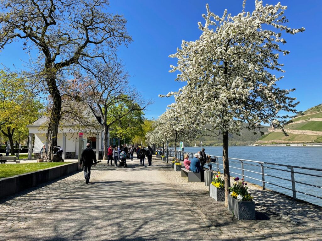 Ostermontag und ich hatte nach fünf Arbeitstagen frei. Das nutzten wir gleich zu einem Ausflug nach Bingen. Wir waren schon öfters dort aber eben auf der anderen Seite vom Rhein, in Rüdesheim. Geparkt am Papa Rhein Hotel ging es an der Uferpromenade entlang bis zum Restaurant Zollamt. Da wir noch nichts gefrühstückt haben, kurzer Boxenstopp um halb zwölf und Essen bestellt. Das Essen dort ist wirklich top. Bei allen drei Gerichten die wir bestellt hatten gab es nichts auszusetzen. Die Bedienung sehr nett und hilfsbereit. Von uns volle Punktzahl.